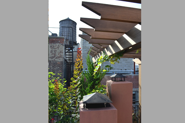 Perched in a prime SoHo location, this roof garden has a laid back country feel. We focused on mixed perennial plantings that flower all summer long. Fruit trees and grape vines give the client produce throughout the season.