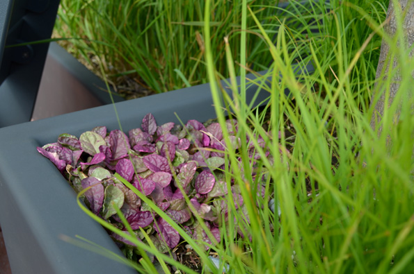 Featuring bar height and regular height dining tables as well as recycled benches and lounge seating, this garden provides many options for relaxing and enjoying the rooftop and community herb garden.